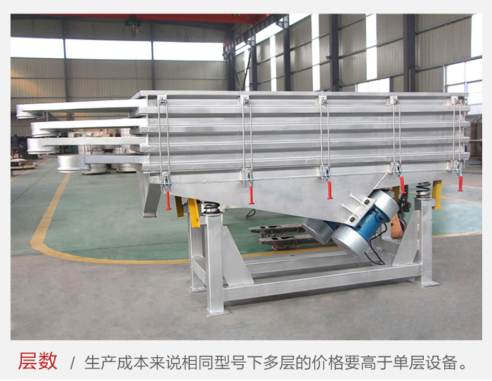 單層振動篩與二層振動篩的區別還是很大的。價格不同,就設計和生產成本來說相同型號的振動篩多層的價格要高于單層設備。多層振動篩可以篩分多種物料,而單層振動篩只能篩分一種物料。所以這也是選擇雙層振動篩比較好的原因。