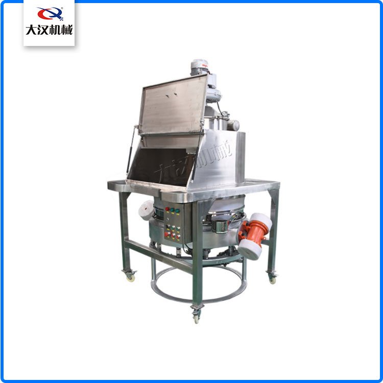 設(shè)置格柵,有效防止PE袋與粉末接觸,并配有振動篩(一般是直排篩或旋振篩),可有效攔截異物,確保出料合格。