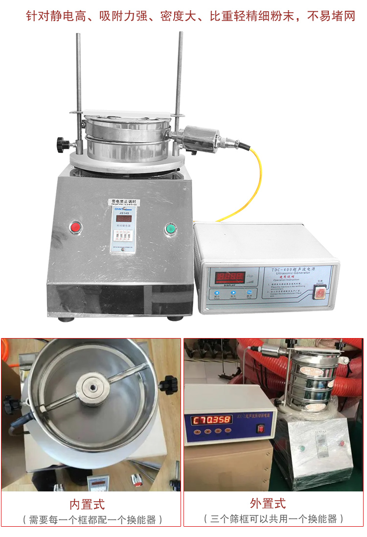 超聲波檢驗篩是在普通檢驗篩上加裝了超聲波換能器,是一種針對靜電高、吸附力強、密度大、比重輕精細粉末的檢驗設備,它篩分細至低至20微米,而不會堵塞篩網,解決了當前實驗篩在做微細粉分樣時因團聚,靜電,強吸附性卡堵網孔等篩分難題。