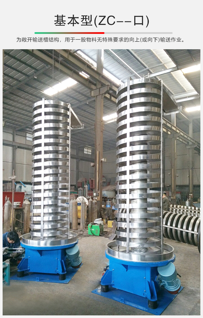 1.基本型(ZC--口),為敞開輸送槽結(jié)構(gòu),用于一股物料無(wú)特殊要求的向上(或向下)輸送作業(yè)。